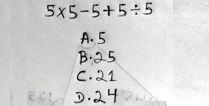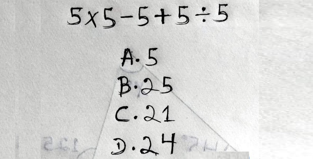 Dus, het resultaat van 5×5−5+555 \times 5 – 5 + \frac{5}{5}5×5−5+55​ is 21.
