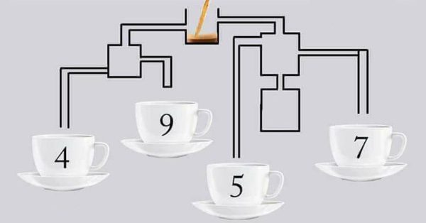 Je ziet een afbeelding met een doolhof van onderling verbonden buizen, en aan het einde van deze buizen staan genummerde koffiekopjes. De uitdaging lijkt simpel: raad welke kop als eerste gevuld zal worden met koffie. Hoewel de oplossing misschien eenvoudig lijkt, hebben de meeste mensen het meestal mis. Weet je zeker dat je het juiste antwoord hebt? Neem de tijd om er goed over na te denken voordat je verder kijkt.